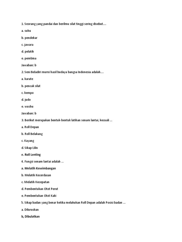 Soal pjok kelas ix by bung_ondo. Pernyataan yang tidak sesuai dengan bacaan di atas adalah. Pencak silat adalah cabang olahraga bela diri yang berasal dari. Dalam peraturan pencak silat indonesia, pertandingan yang menampilkan dua orang. Materiolahraga akan membagikan soal penjas tentang pencak silat.