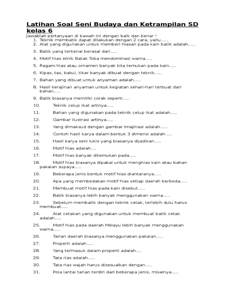 Soal Usbn Sbk Kelas 6 - Contoh Soal Usbn Seni Budaya Smk Dan Jawaban Tahun 2022 - Contoh silabus sma, download, rpp sma, silabud sma, silabus 2018, silabus mata pelajaran, silabus sma versi kemdikbud.